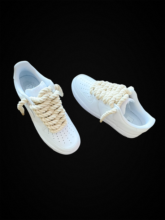 Rope Lace Air Force 1 Custom Trainers - White/White