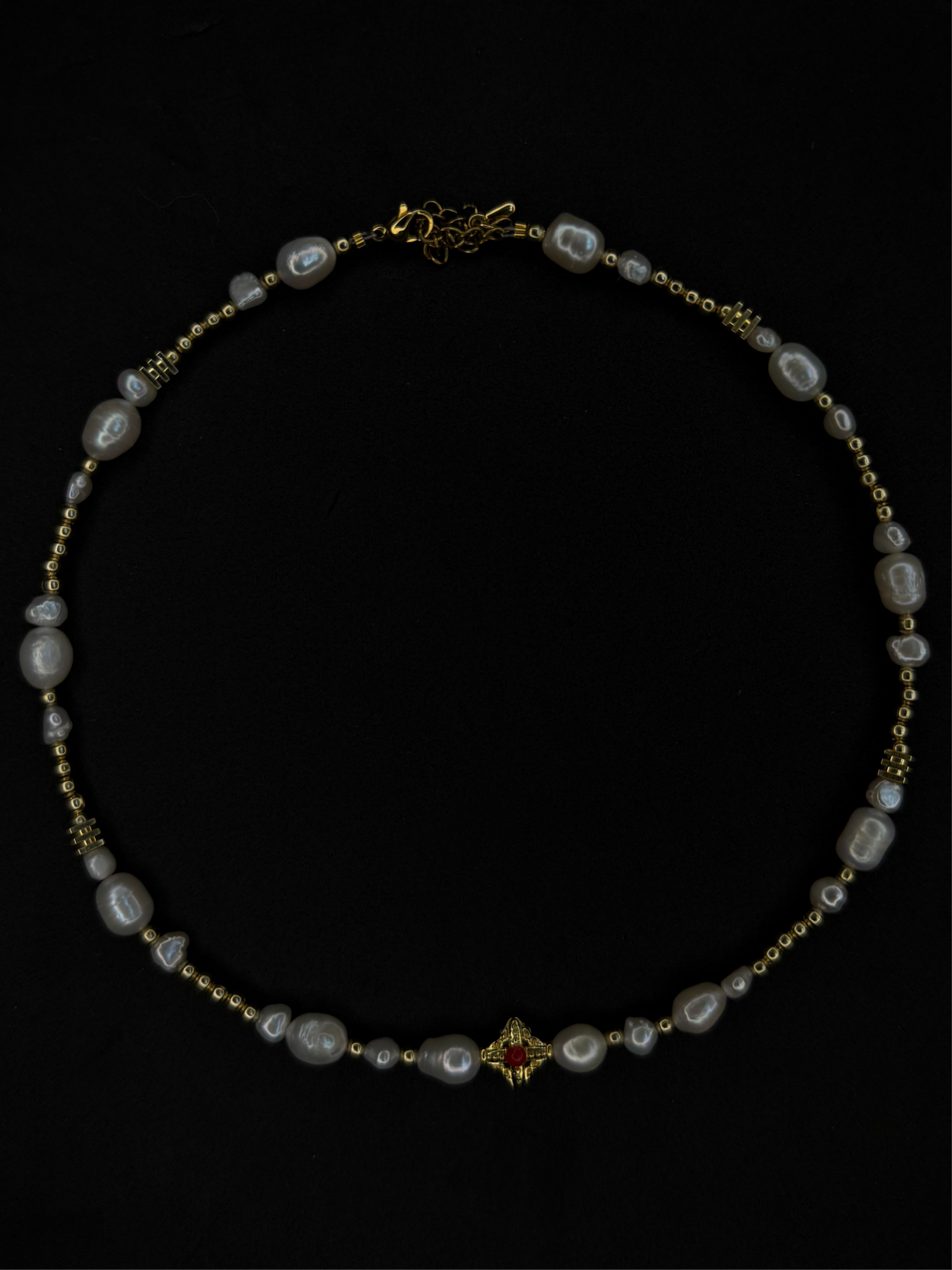 Women’s Reversible Red/Blue Pearl Necklace - White/Gold