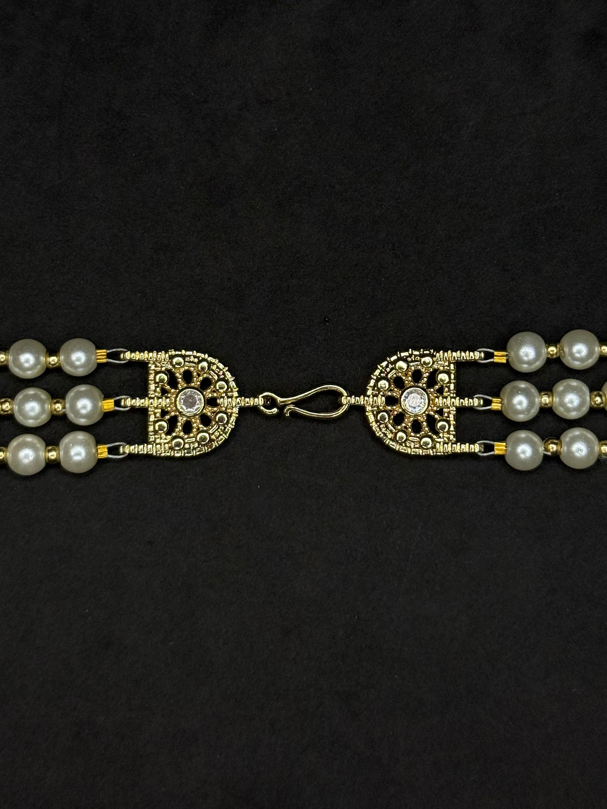Women’s Trio Choker Pearl Necklace - White/Gold
