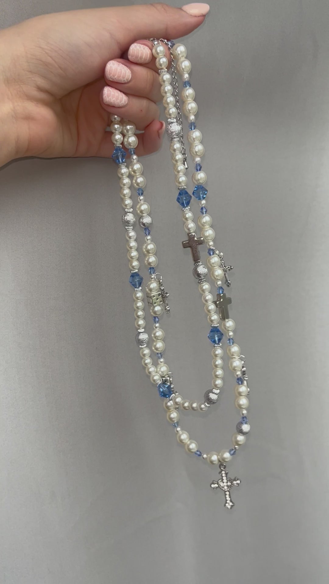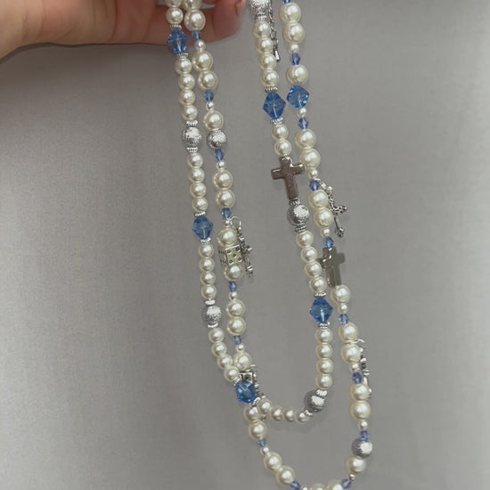 x2 Cross Pendant Pearl Necklaces - White/Blue