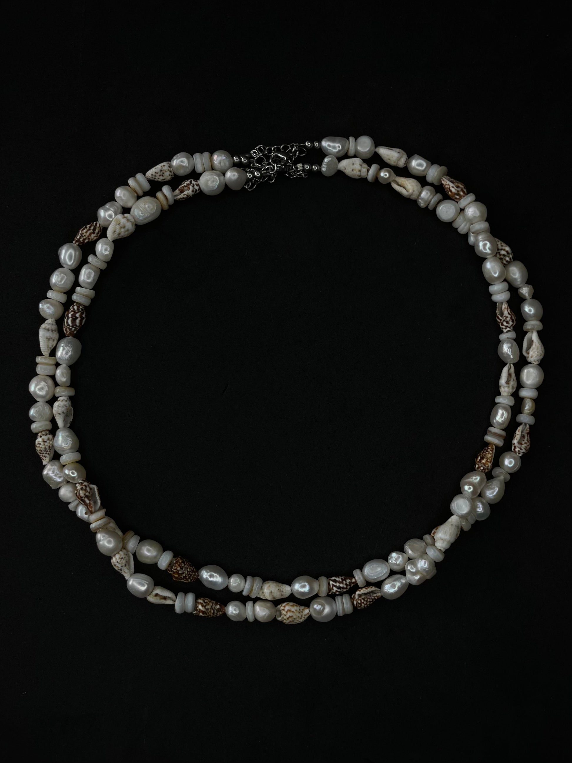 - x1 6-8mm freshwater pearls and shells necklace.